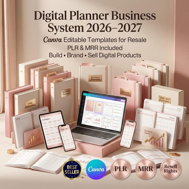 💎 The 2026–2027 Digital Planner Business System — Canva Templates for Resale (PLR & MRR)