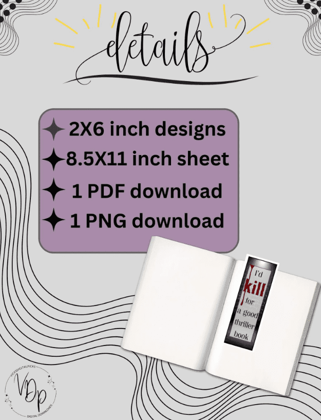تصاميم جمالية داكنة: تتميز كل فاصلة كتب برسومات جميلة آسرة مستوحاة من أفلام الإثارة النفسية الكلاسيكية وأفلام التشويق الحديثة.